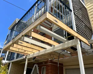Our objective was to replace the two-story deck's damaged and rotten components, including framing, timber joists, and fascia, ensuring the balconies' long-term stability and safety. We carefully coordinated the removal and reinstallation of critical elements, such as air conditioning units and balustrades, to deliver a fully restored and durable deck that meets the highest standards of quality.